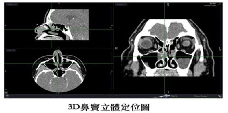 根據世界大型文獻統計,鼻竇炎手術一年內復發率為3.5%,5年內復發率為6.5%。人類的鼻竇極其複雜,過去醫師難以確定是否有將病灶完全清除乾淨。3D導航定位系統,利用光學或磁力定位,繪製出個人化的鼻竇圖形,清楚顯示病灶與正常鼻竇組織。原理是將電腦斷層影像上傳至導航系統,建立個人即時3D立體鼻竇影像,誤差範圍只有1~2mm。讓醫師在手術時精準移除病灶,確保眼睛跟顱部等中樞神經組織的安全性,提升治癒率。